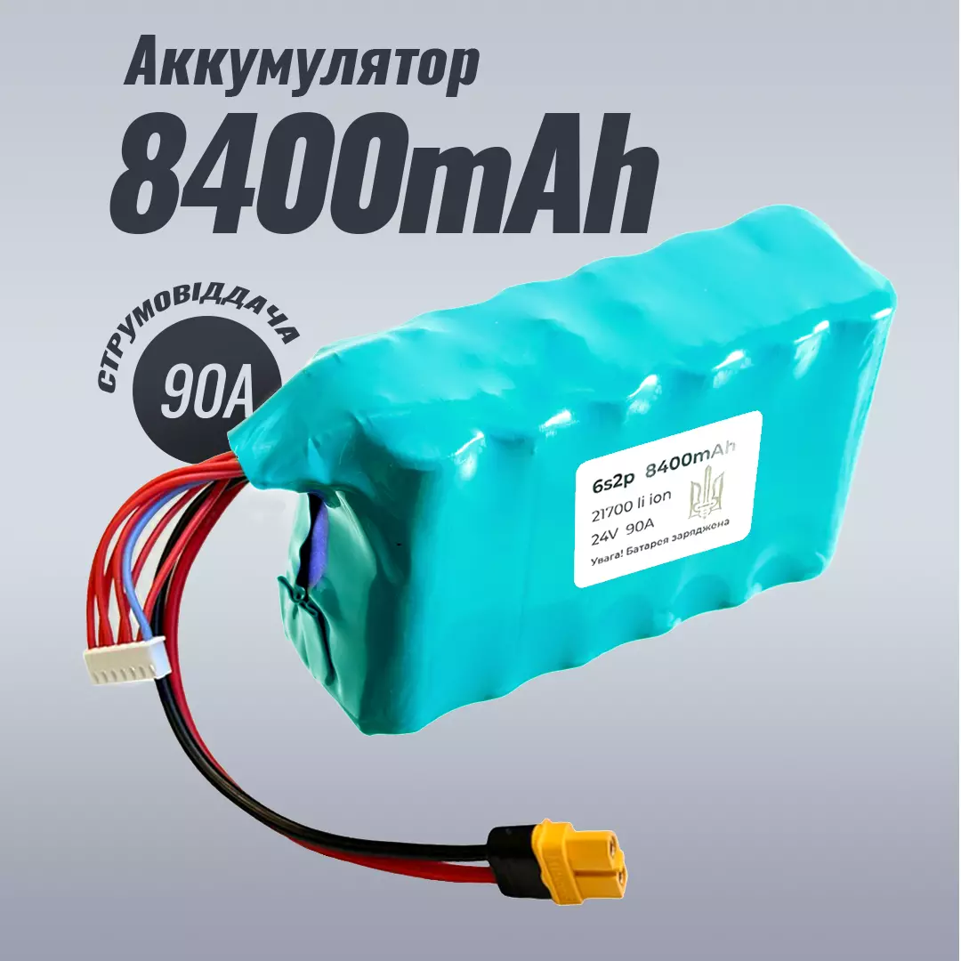 - Дополнительные характеристики: Токоотдача до 90А, Емкость 8400mAh; Производитель элементов Molicel; Тип аккумулятора Li-Ion; Емкость аккумулятора 8400 мА. г; Напряжение 22.2 В; Длин