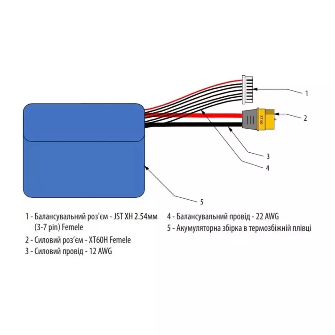 - Безопасность и удобство: Конектор XT60H-F и кабели 12AWG обеспечивают надежное соединение и упрощают процесс зарядки.