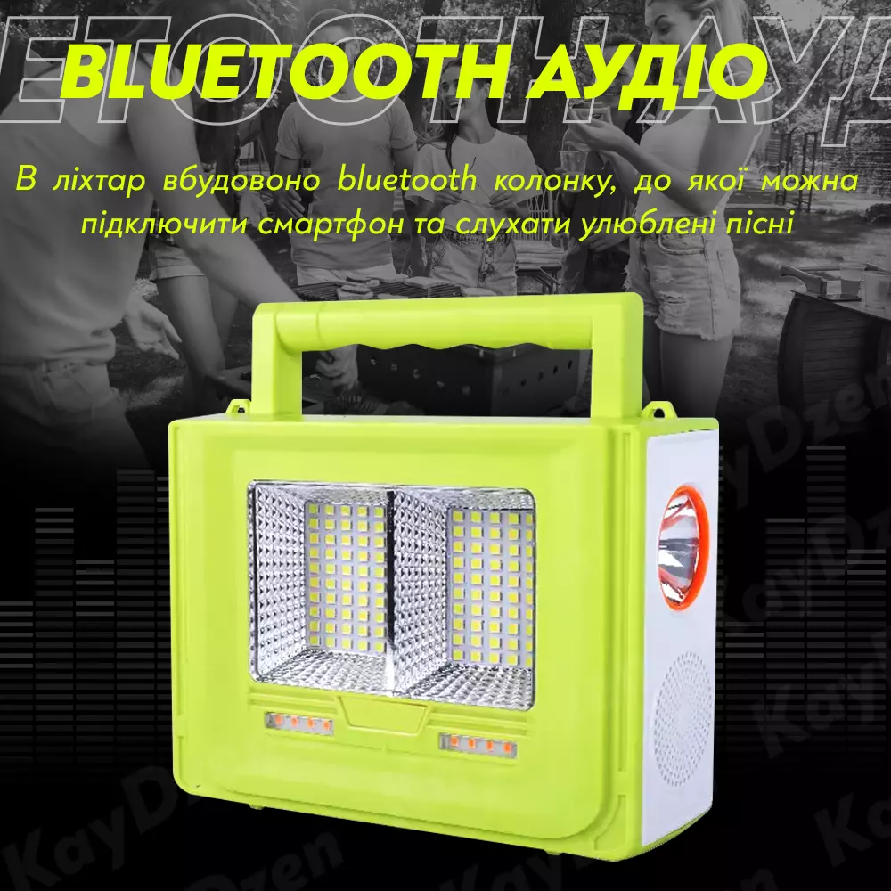 - Bluetooth-аудио. В фонарь встроена Bluetooth колонка, к которой можно подключить смартфон и слушать любимые песни.