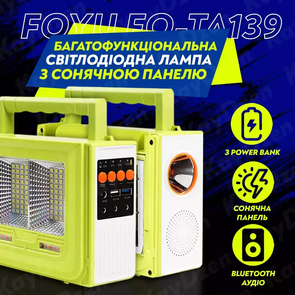 LED светильник FOYU FO-TA139 - это многофункциональная аварийная солнечная лампа с множеством функций. Cветильник можно использовать для кемпинга, при ежедневных отключениях электроэнергии, аварийного освещения и живого освещения. Эту лампу легко носить с собой, благодаря удобной ручке для переноски. Светильник FOYU FO-TA139 c aккумулятopoм и coлнeчнoй пaнeлью – экoнoмный cпocoб aвтoнoмнoгo ocвeщeния в пoxoдe, нa pыбaлкe, пикникe c нoчeвкoй!