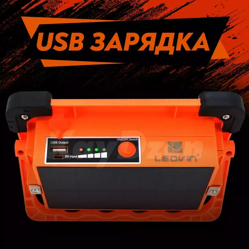 Аккумуляторный LED светильник Leovin LE-068 30W + power bank прожектор аварийный с солнечной панелью и