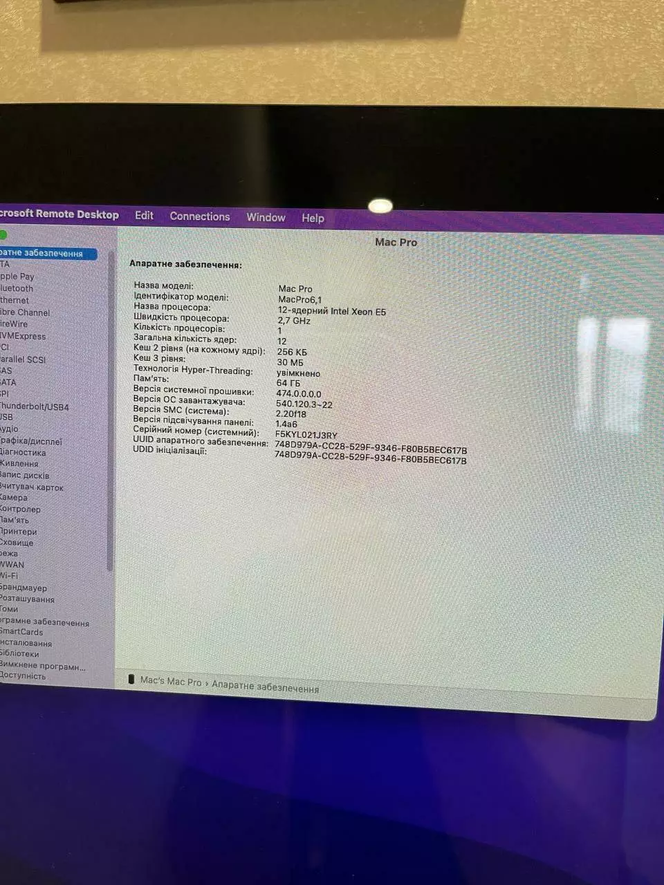 - Модель: Apple Mac Pro 6.1