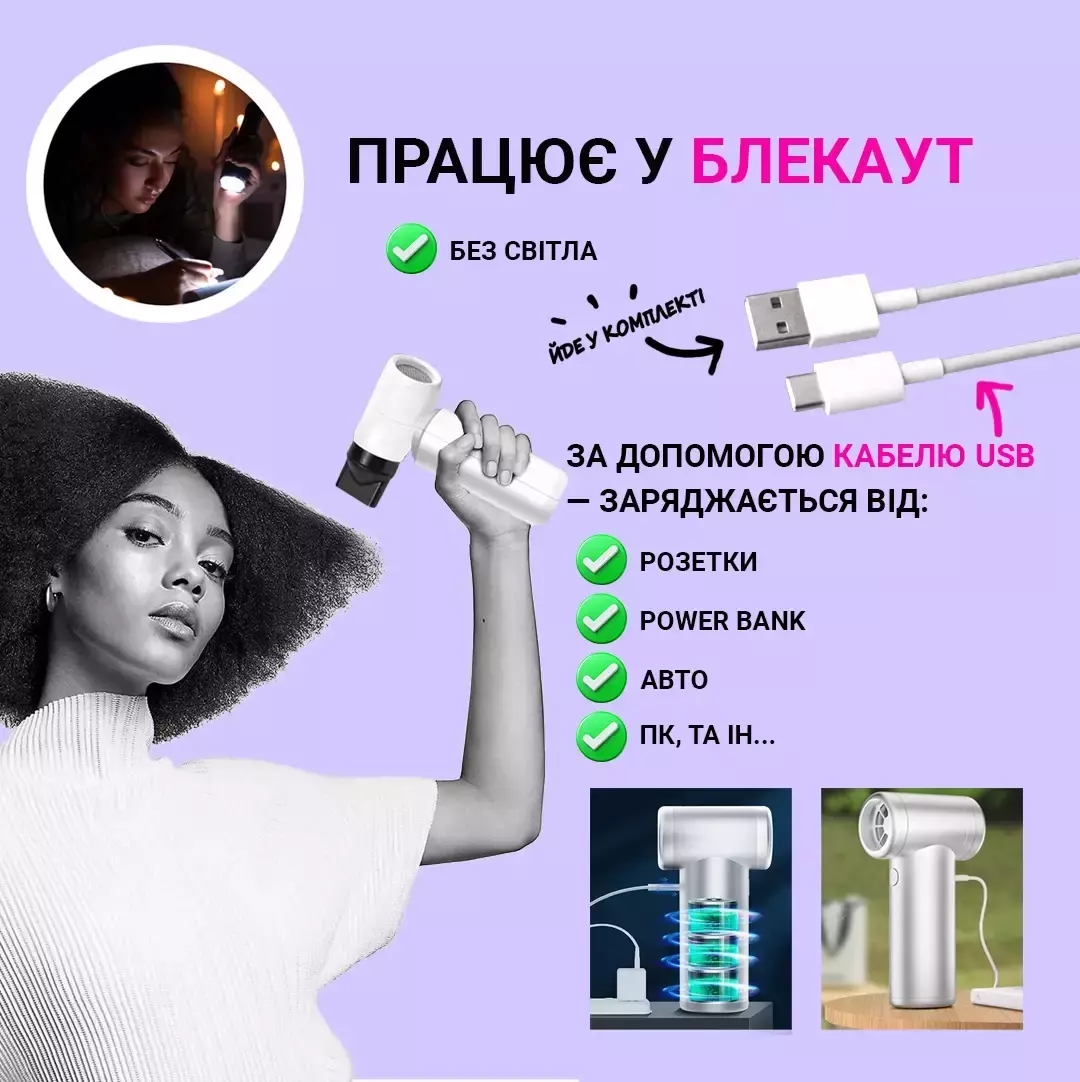 Очутились в ситуации с мокрой головой/в неожиданном приключении и ищете более менее универсальный фен, который будет полезен в любых условиях, включая экстремальные? Наш беспроводной, универсальный и портативный фен с аккумулятором — именно то, что вам нужно! Идеален для путешествий, активного отдыха, кемпинга и даже для использования дома или в отеле, бане, сауне. Этот фен не только мощный и компактный, но и безопасный для ваших волос.