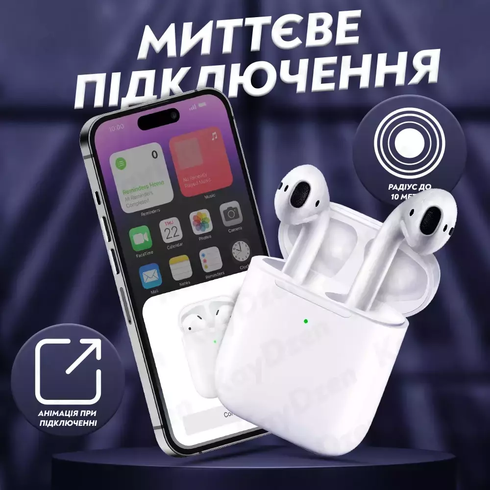 AirPro airpods 2 имеют беспроводное подключение, что позволяет слушать музыку и звонки без проводов, обеспечивая полную свободу движения.Стильный и удобный дизайн AirPro airpods 2 подходит для любого стиля одежды, идеально сидит в ушах и не вызывает дискомфорта даже после продолжительного использования. Кроме того, наушники легко подключаются к любому устройству, поддерживающему беспроводное соединение, и имеют интуитивно понятный интерфейс управления.