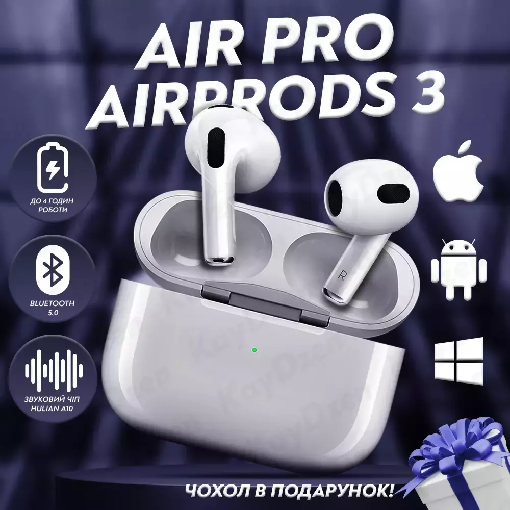 Беспроводные наушники AirPro airpods 3 TWS Premium (Chip Hulian A10) Белый + подарок чехол