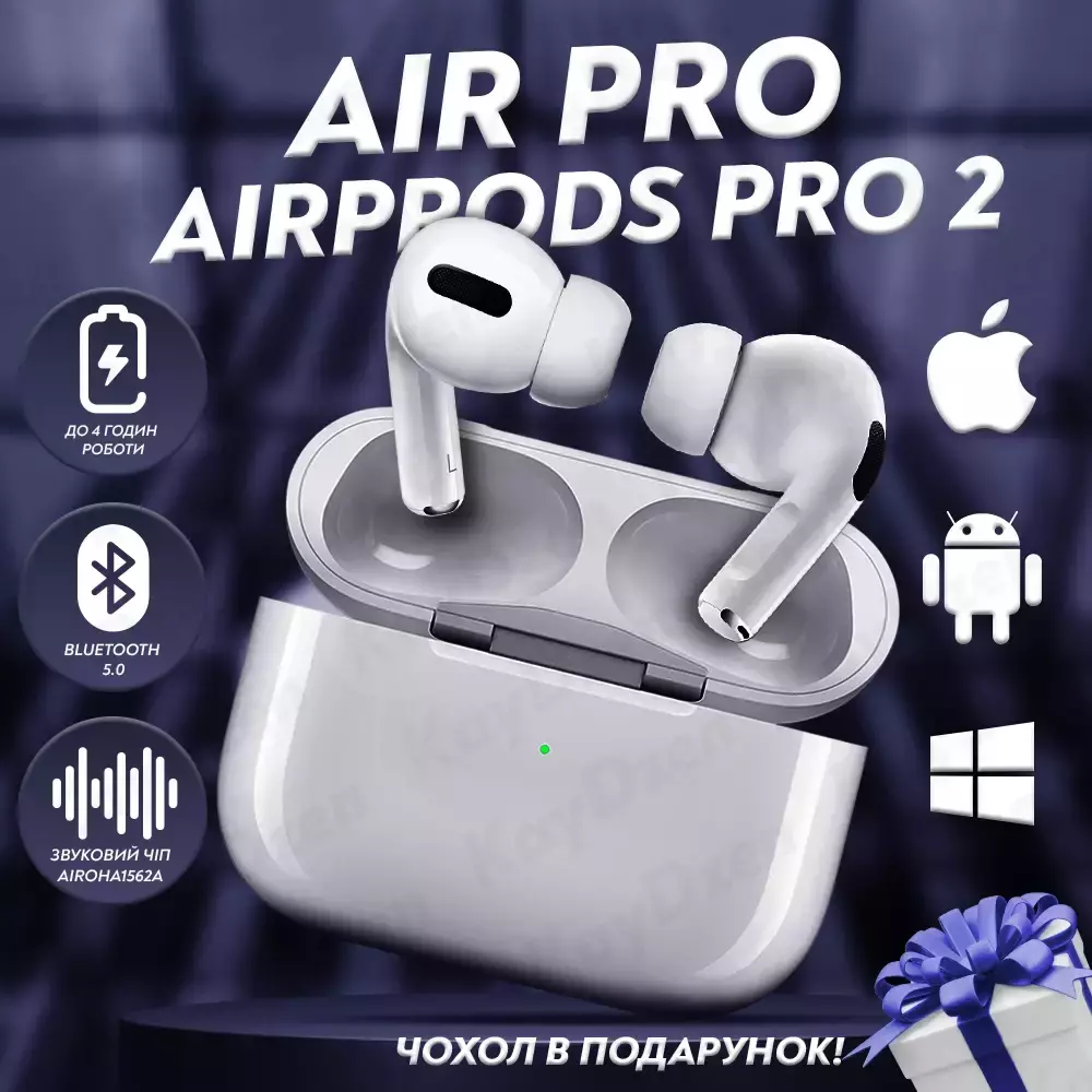 Беспроводные наушники AirPro airpods PRO 2 с шумоподавлением и гироскопом (Chip AIROHA 1562A) TWS Белый +