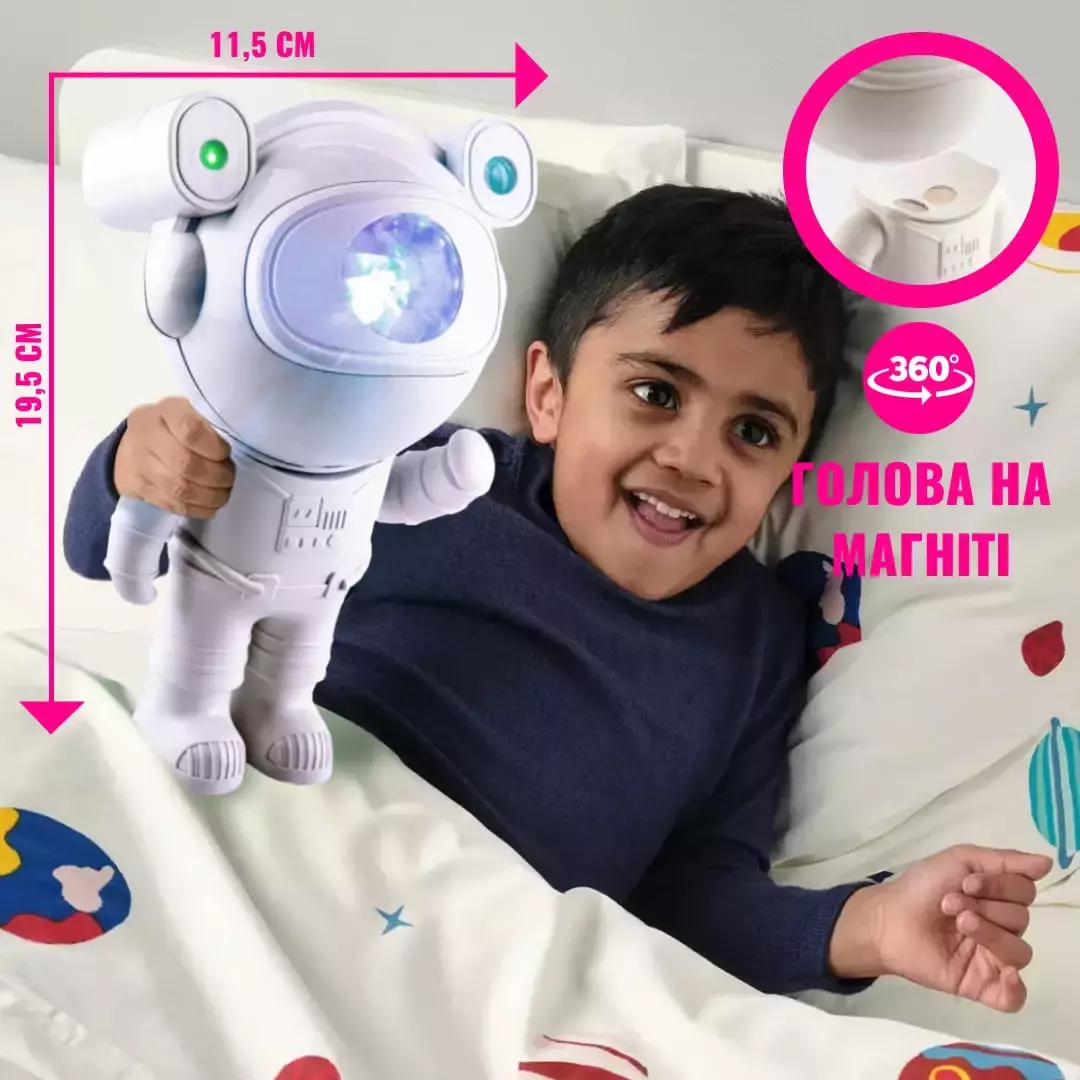 3D Проектор звездного неба "Космонавт" от Astronavt — детский ночник, который создает невероятную атмосферу в комнате вашего ребенка. С 12 магическими режимами свечения и встроенной Bluetooth MP3 колонкой, этот проектор станет незаменимым спутником вашего малыша перед сном!