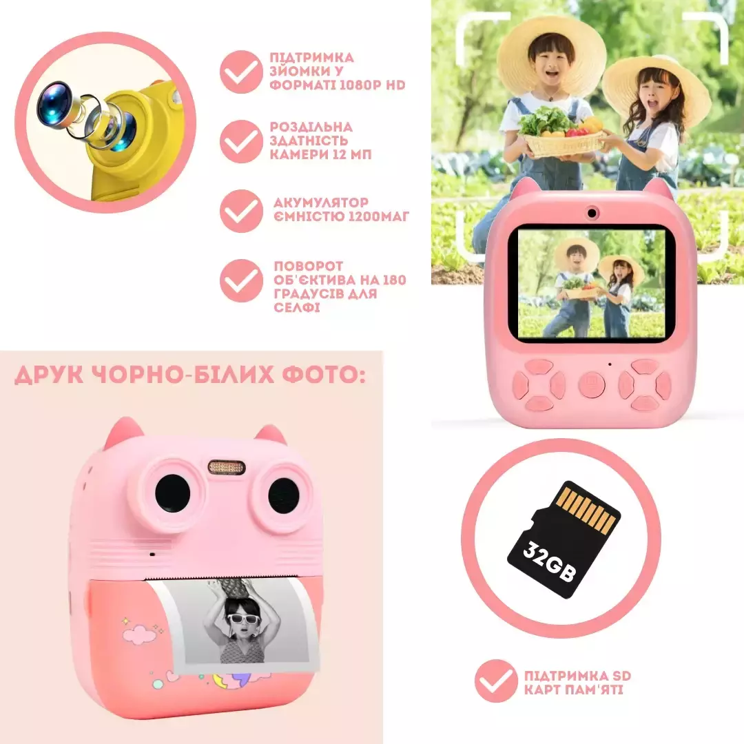 Детская камера 1080P HD (12 МП) с функцией печати — лучший подарок для детей от 6 лет, который поможет им сохранить самые интересные и счастливые моменты жизни на бумаге!