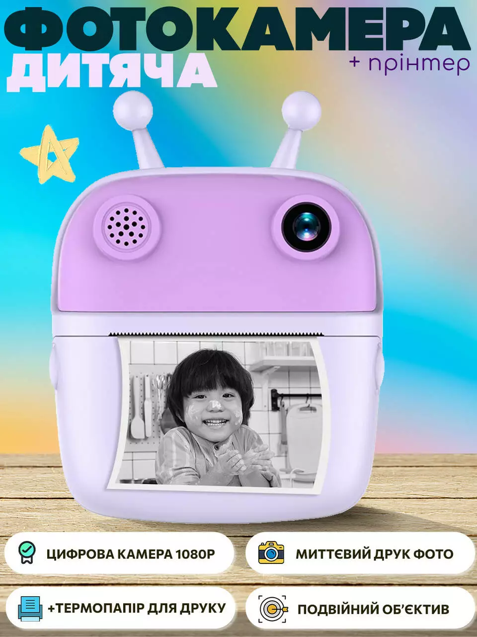 Превратите обычные моменты в волшебные воспоминания. Ваш ребенок может использовать этот фотоаппарат для запечатления: