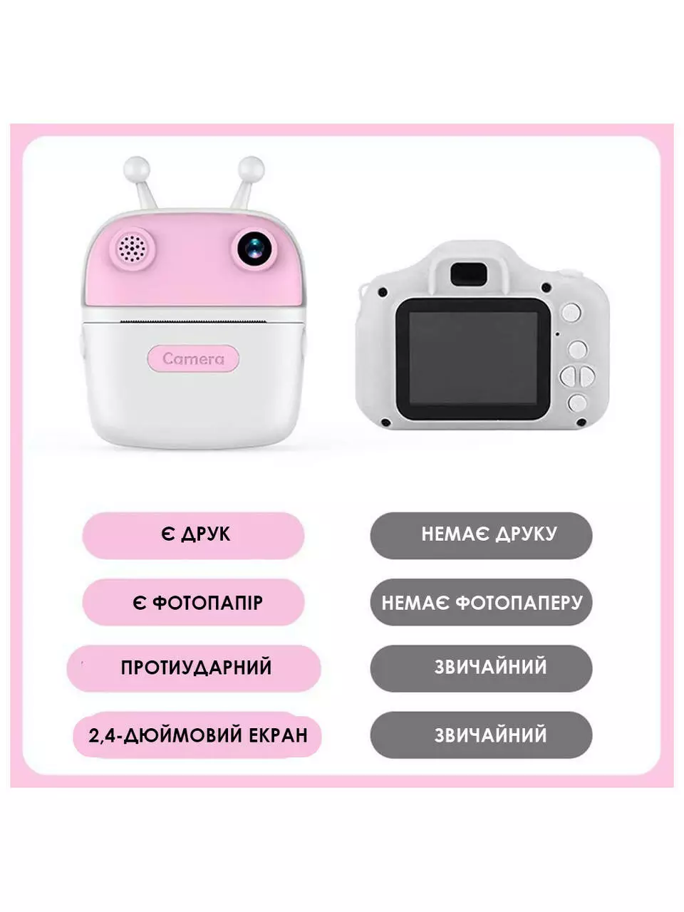 Детский мини фотоаппарат 2,4 дюйма + 2 рулона бумаги с моментальной печатью питание от USB Розовый