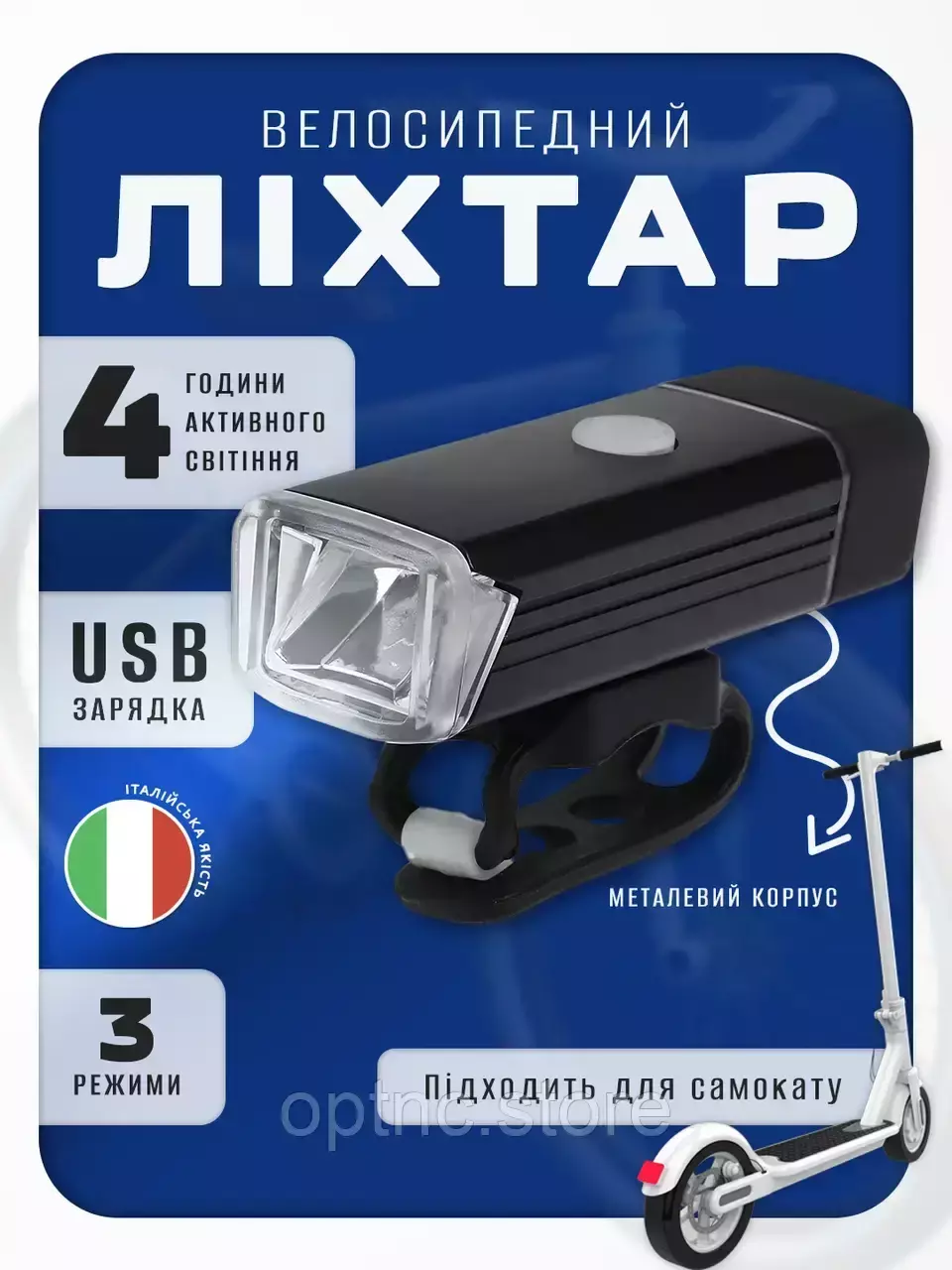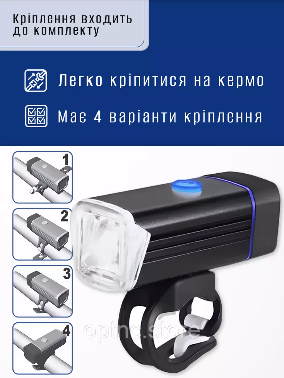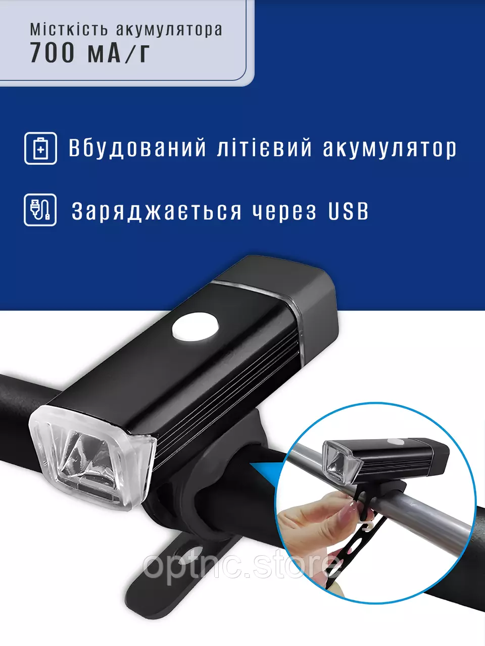 Фонарик для велосипеда usb передний led велофара с мигалкой Andowl Q-BK016 на аккумуляторе