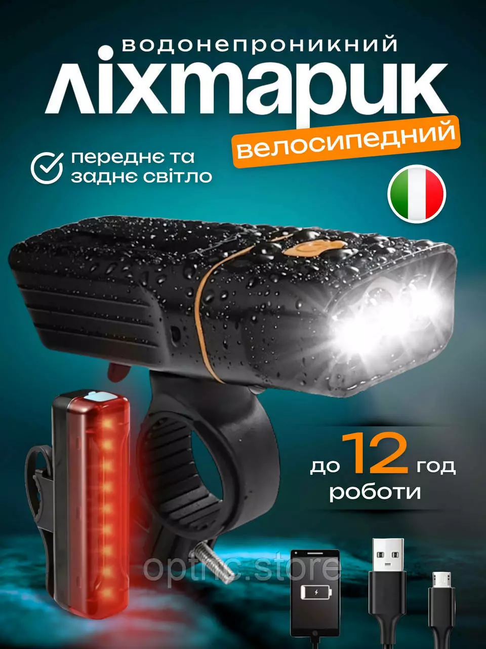 Фонарик для велосипеда usb передняя и задний led велофара с мигалкой Andowl Q-BK017 на аккумуляторе