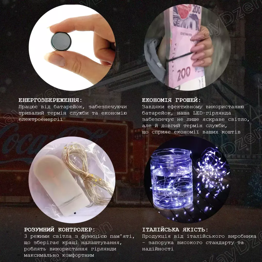 - Экономия денег: Благодаря эффективному использованию батареек, наша LED-гирлянда обеспечивает не только яркий свет, но и долгий срок службы, что способствует экономии ваших средств