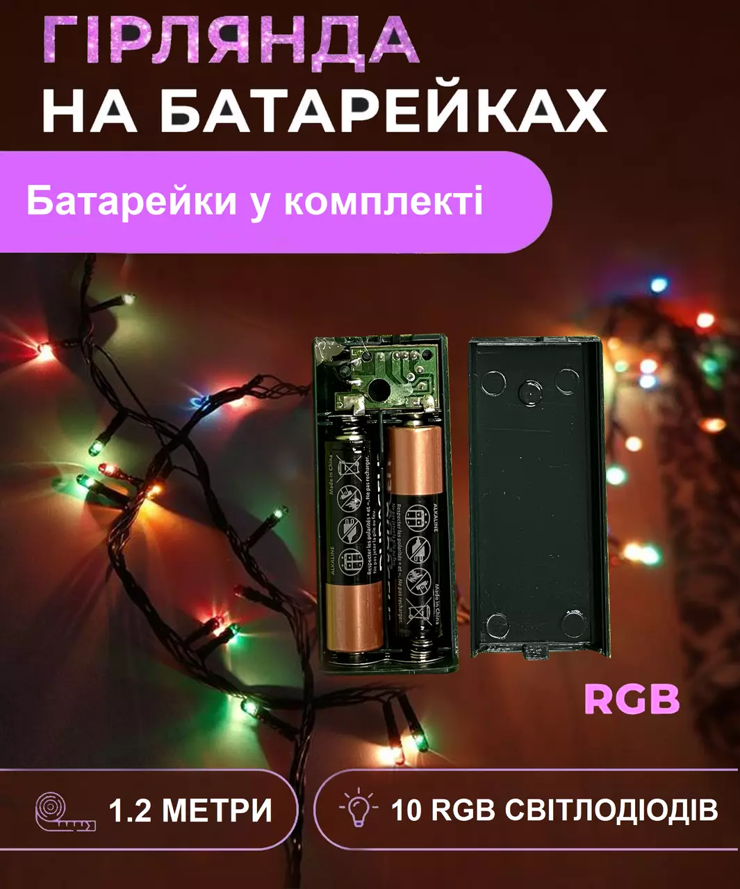 Длина: 1.2 метра гирлянды обеспечивает яркое и насыщенное освещение, делая ваше пространство более красочным и эффектным.