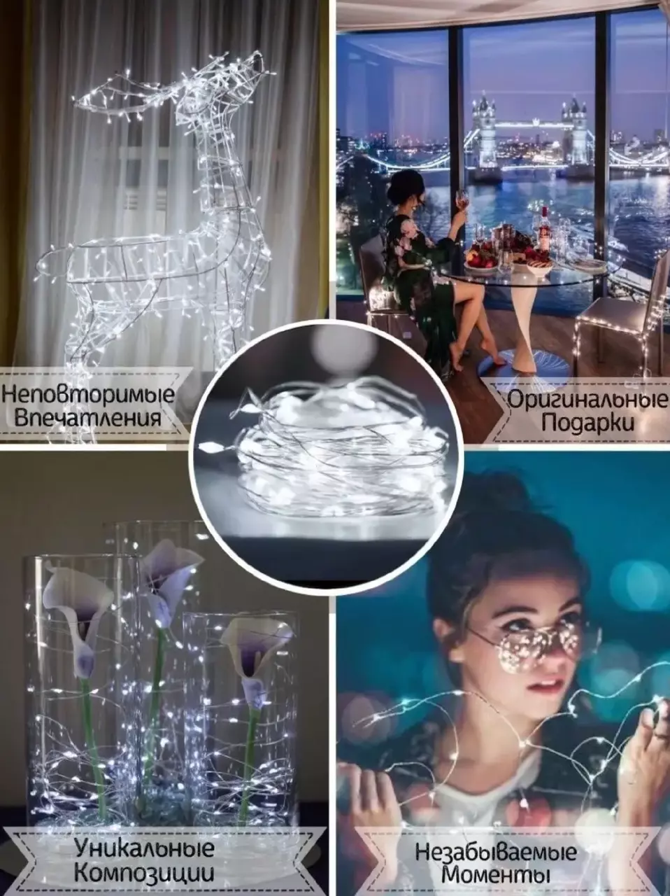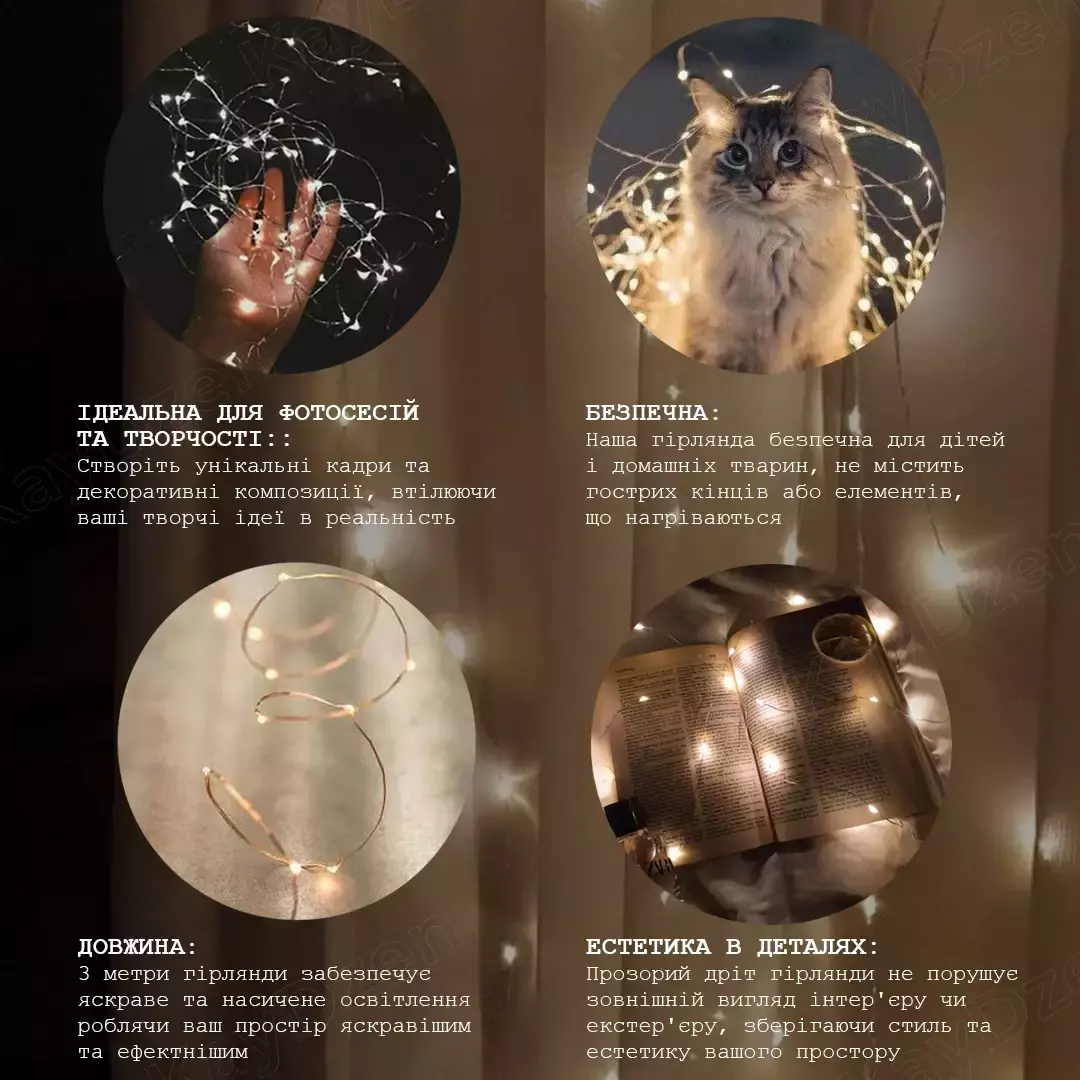 - Эстетика в деталях: Прозрачная проволока гирлянды не нарушает внешний вид интерьера или экстерьера, сохраняя стиль и эстетику вашего пространства