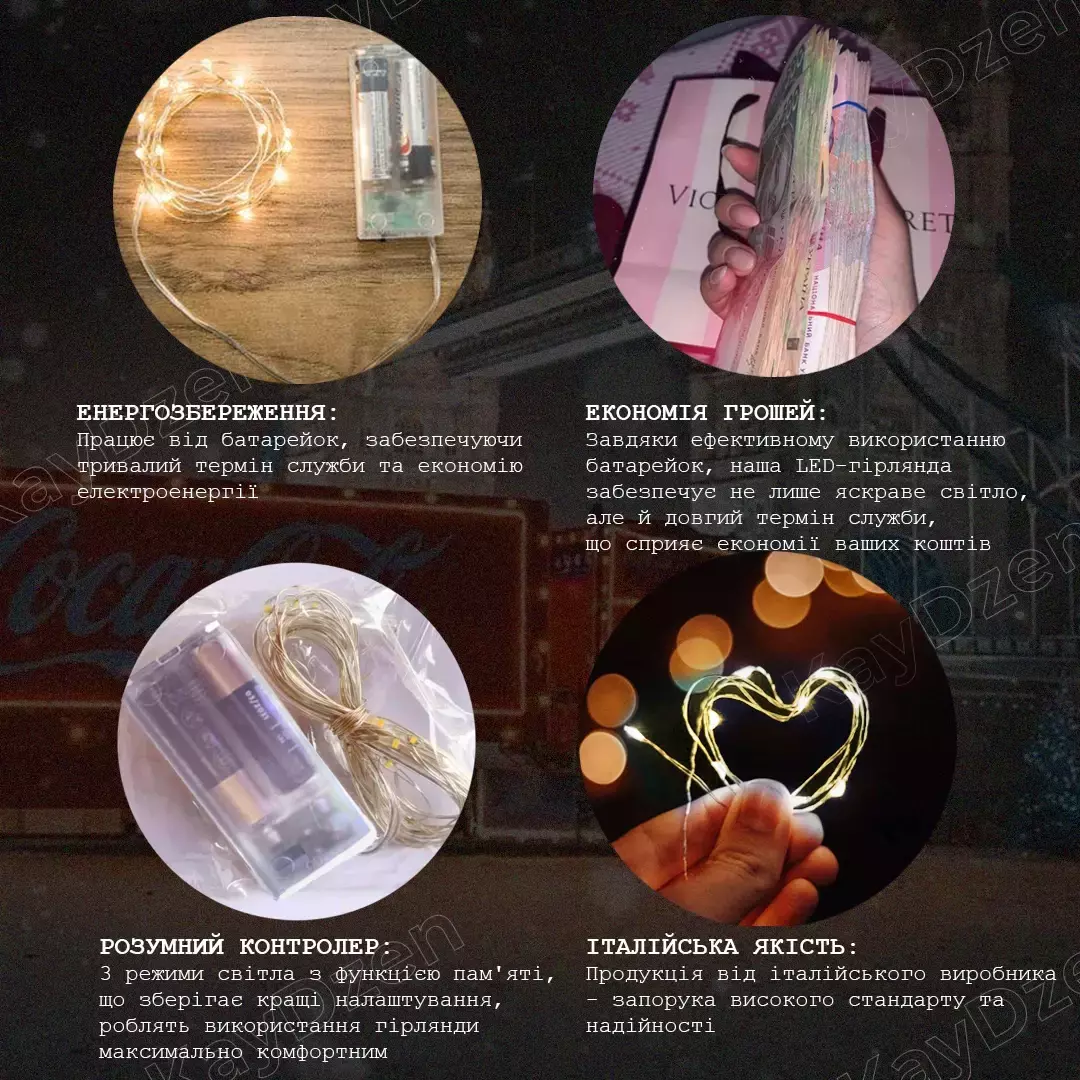- Экономия денег: Благодаря эффективному использованию батареек, наша LED-гирлянда обеспечивает не только яркий свет, но и долгий срок службы, что способствует экономии ваших средств