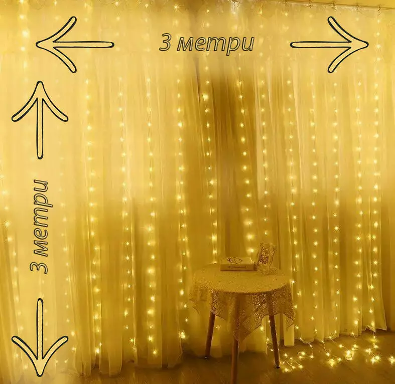 - Вид: Гирлянды-занавесы (Curtain-light); Гирлянды-нити (String-light)