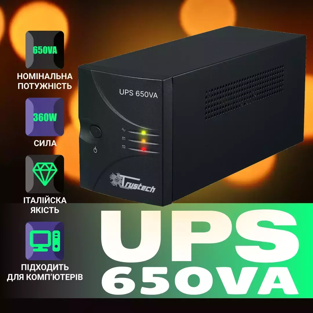 ИБП для ПК 3 розетки True Tech UPS 650VA Источник бесперебойного питания бесперебойник