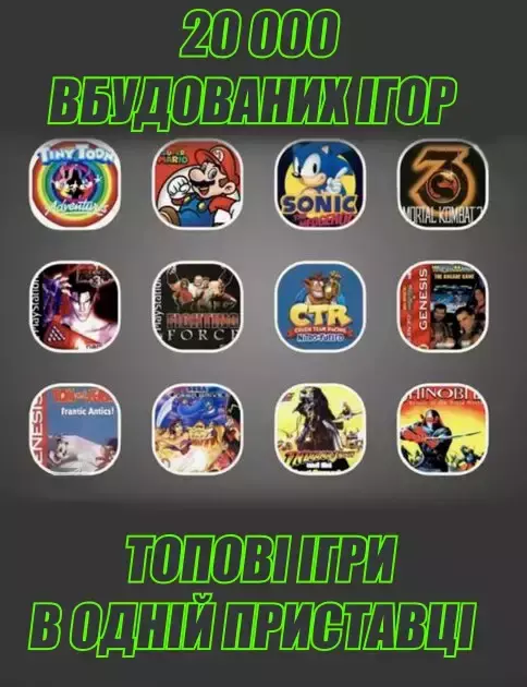 - Широкий выбор игр: Включает 15000 классических аркадных игр из периода 80-х, 90-х и 2000-х годов, обеспечивая непревзойденное игровое разнообразие.