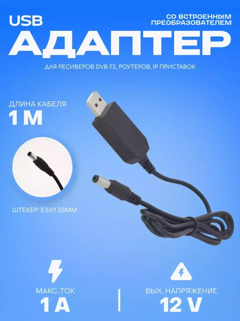 Кабель для роутера - повышающий переходник USB - DC 12V DC 5.5x2.1mm (UD1202) адаптер переходник для роутера