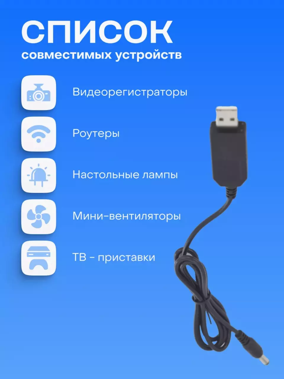 - Тип кабеля: USB - DC