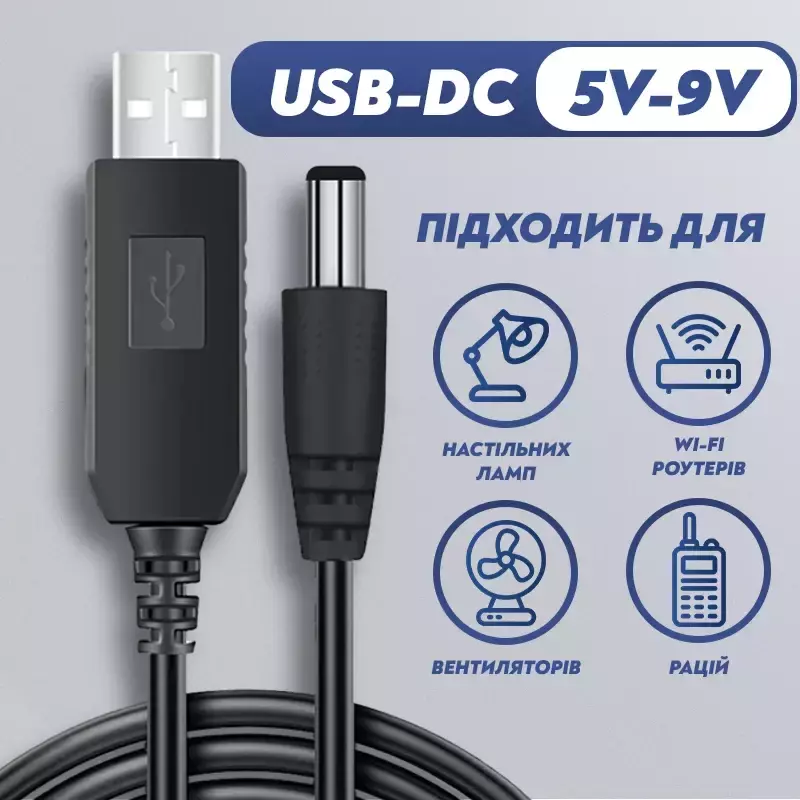 Повышающий переходник – кабель для роутера USB 5V to 9V DC 5.5*2.1 подойдет для модемов, роутеров, хабов, свитчей, переключателей, разветвителей, ТВ-приставок, ресиверов, зарядных устройств, камер наблюдения и т. д. Питание от любой розетки (порта) USB к любому разъёму на технике, подходящему по размерам, полярности, напряжению и току.