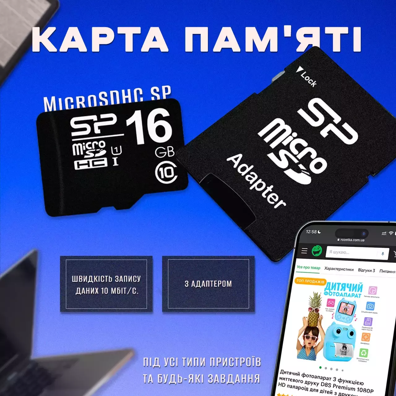 Не упустите возможность модифицировать свои цифровые устройства с помощью карты памяти MicroSD Silicone 16 Gb с адаптером. Превратите ваши воспоминания в качественные фото и видео, а повседневные задачи – в простые и быстрые процессы. Заказывайте сейчас и наслаждайтесь высокоскоростной памятью!
