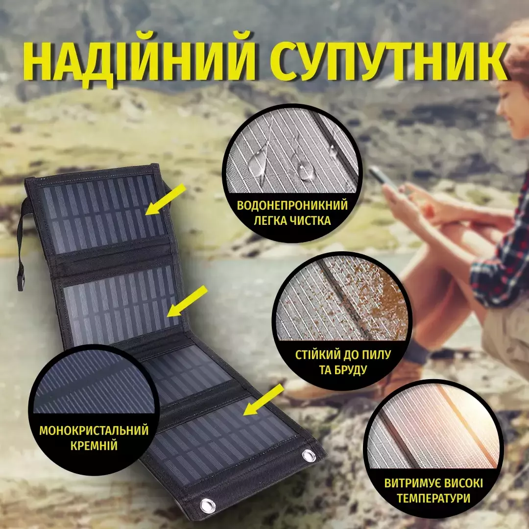 - Применение: Зарядка мобильных телефонов, повербанков, идеальное решение для активного отдыха и аварийных ситуаций