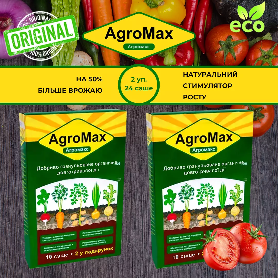 Комплект 2 уп. / 24 саше Биоудобрение универсальное Агромакс (Agromax) для повышения урожайности огорода и др.