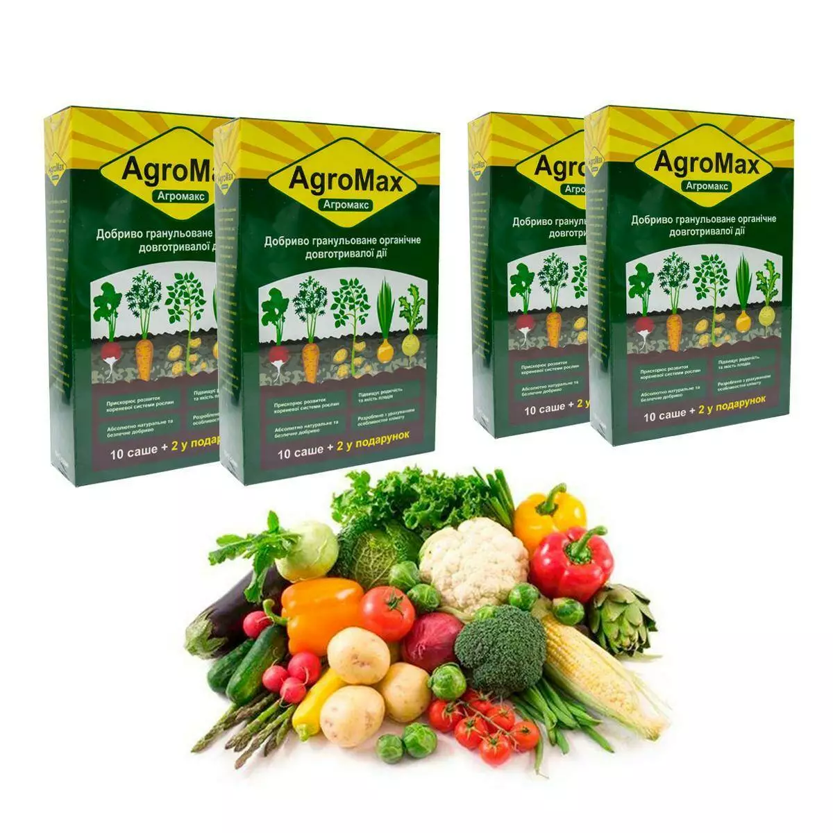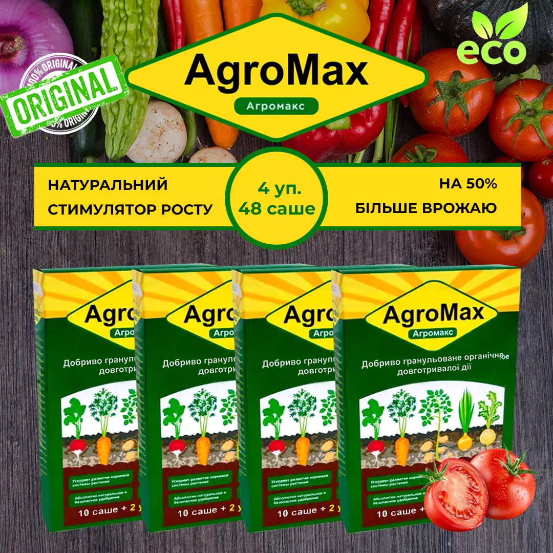 Комплект 4 уп. / 48 саше Биоудобрение универсальное Агромакс (Agromax) для повышения урожайности огорода и др.