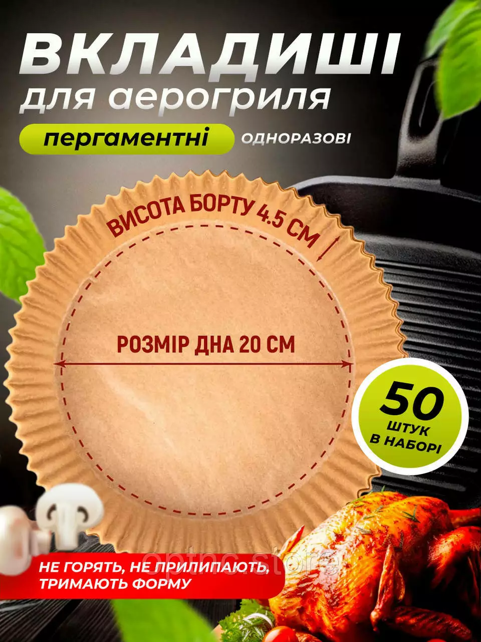 Круглые бумажные формы 50 шт 20х4.5 см для аэрогриля Air Fryer, силиконизированный пергамент для выпекания