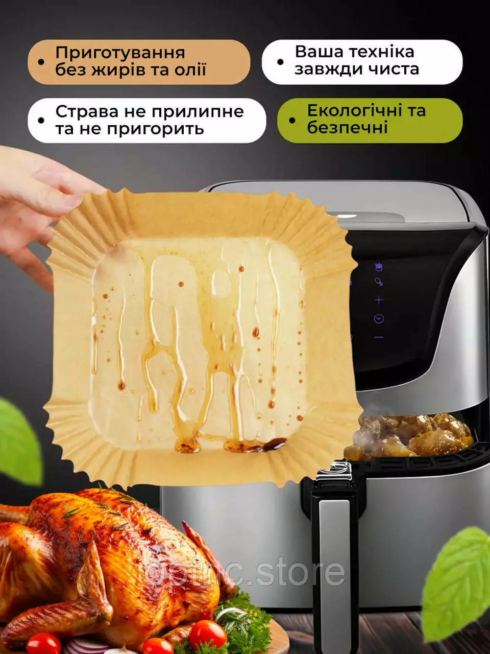 - Универсальность: пергаментные вкладыши идеально подходят для использования в микроволновых печах, аэрогриле, фритюрнице и духовке. Просто выберите, что именно вам нужно – кулинарные подвиги ожидают вас!