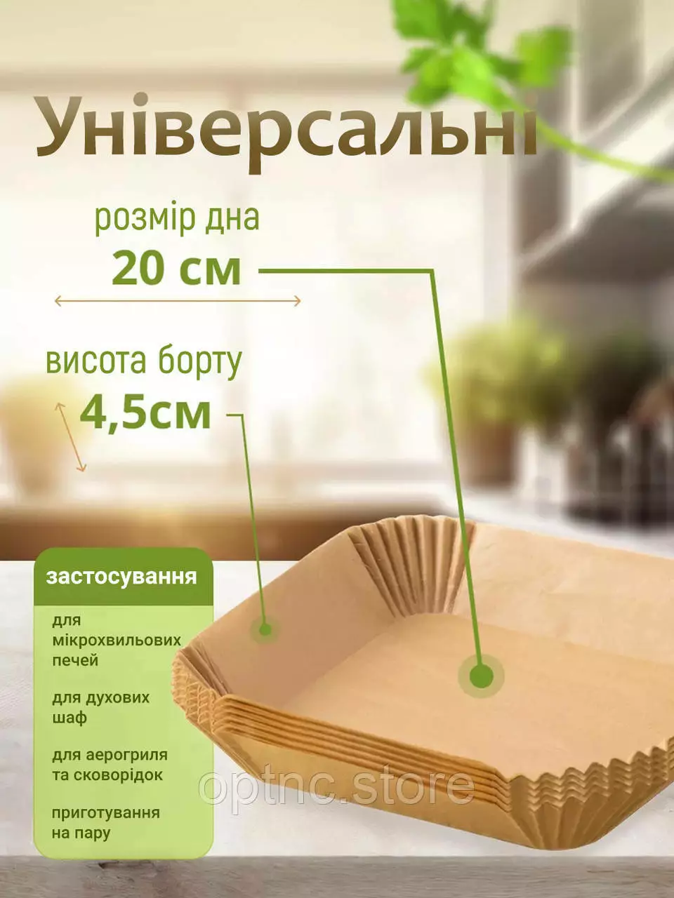 Квадратные бумажные формы 50 шт 20х4.5 см для аэрогриля Air Fryer, силиконизированный пергамент для выпекания