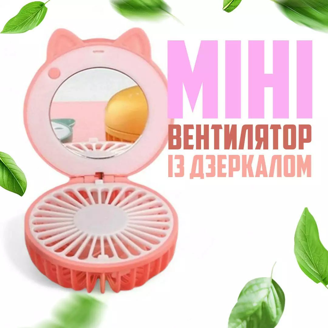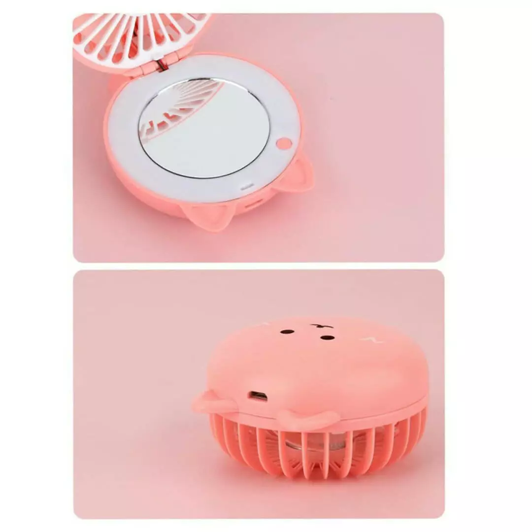 Многофункциональность: Мини вентилятор с зеркалом и LED-подсветкой объединяет в себе три функции: освежающий бриз, яркое освещение и удобное зеркало. Идеален для точного макияжа в любых условиях.
