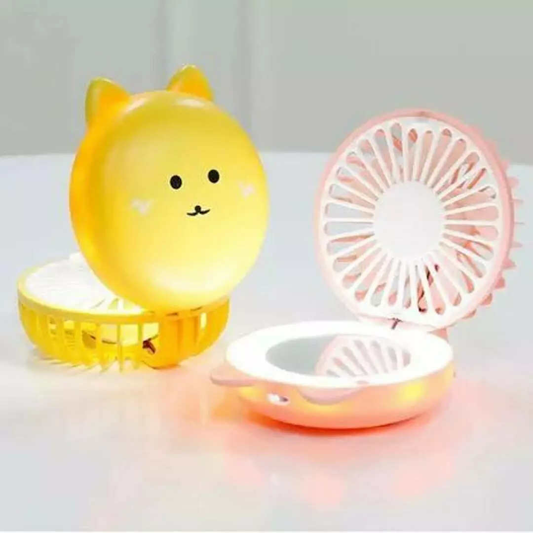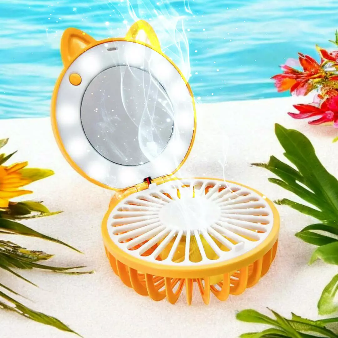 Многофункциональность: Мини вентилятор с зеркалом и LED-подсветкой объединяет в себе три функции: освежающий бриз, яркое освещение и удобное зеркало. Идеален для точного макияжа в любых условиях.