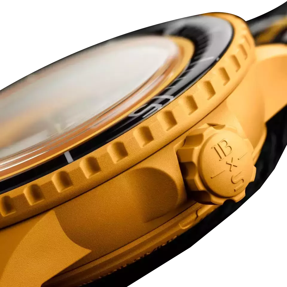На обороте часов размещены пять мотивационных надписей: PASSION FOR DIVING (ЛЮБОВЬ К ДАЙВИНГУ) – LICENCE TO EXPLORE (ЛИЦЕНЗИЯ НА ИССЛЕДОВАНИЯ) – OCEAN BREATH (ДЫХАНИЕ ОКЕАНА) – PROTECT WHAT YOU LOVE (БЕРЕГИ ТО, ЧТО ЛЮБИШЬ) – IMMERSE YOURSELF (ПОГРУЖАЙСЯ!). Ремешок NATO произведен из переработанных рыбацких сетей, выловленных из моря. Пряжка и тренчики изготовлены из биокерамики.