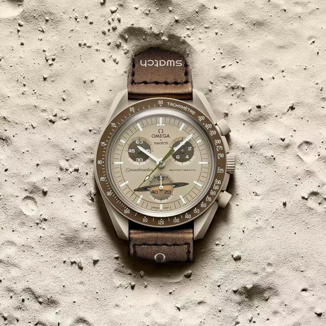 Дизайн каждой модели часов вдохновлен планетой или небесным телом в Солнечной системе. На всех циферблатах счетчики расположены так же, как в классических хронографах Swatch. Они используют тот же кварцевый калибр, что позволяет расположить стрелки таким образом. Что выводит эту коллекцию на орбиту, так это сочетание инновационного материала Swatch BIOCERAMIC с ключевыми элементами дизайна OMEGA Speedmaster Moonwatch. Водонепроницаемость в этом случае составляет 3 бара или 30 метров. Это означает, что фактическая водостойкость позволяет противостоять брызгам при мытье рук. Ремешок на липучке очень удобен и идеально подходит для ежедневного ношения.