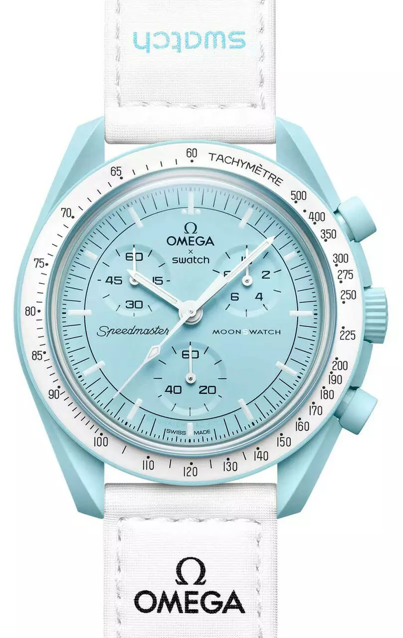 Дизайн каждой модели часов вдохновлен планетой или небесным телом в Солнечной системе. На всех циферблатах счетчики расположены так же, как в классических хронографах Swatch. Они используют тот же кварцевый калибр, что позволяет расположить стрелки таким образом. Что выводит эту коллекцию на орбиту, так это сочетание инновационного материала Swatch BIOCERAMIC с ключевыми элементами дизайна OMEGA Speedmaster Moonwatch. Водонепроницаемость в этом случае составляет 3 бара или 30 метров. Это означает, что фактическая водостойкость позволяет противостоять брызгам при мытье рук. Ремешок на липучке очень удобен и идеально подходит для ежедневного ношения.