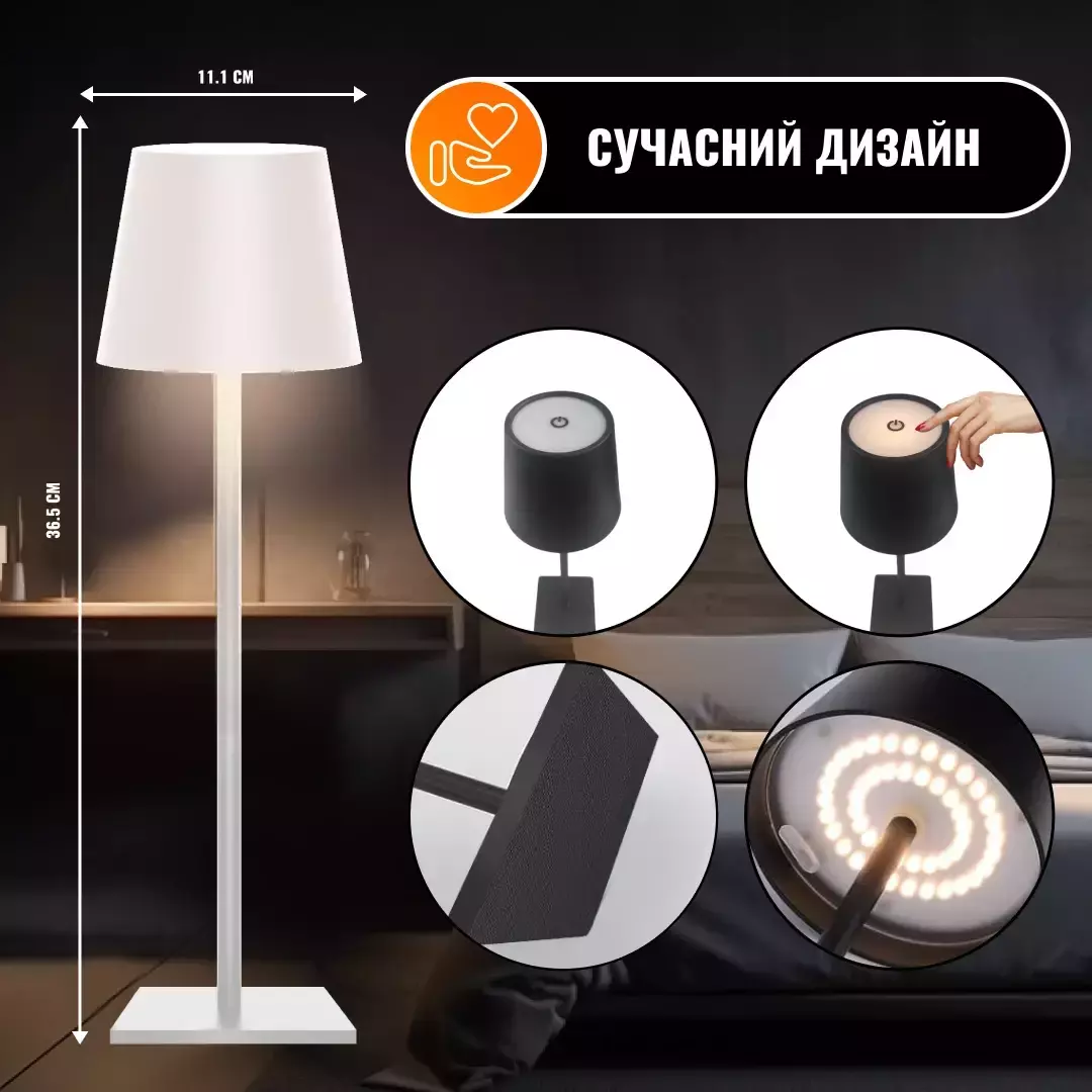 - Удобное управление: Лампа включается и переключает режимы касательными переключателями на верхней части.