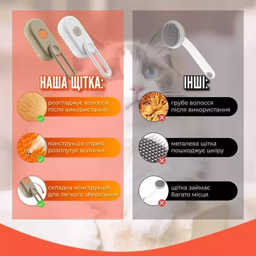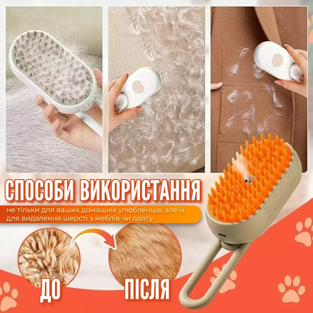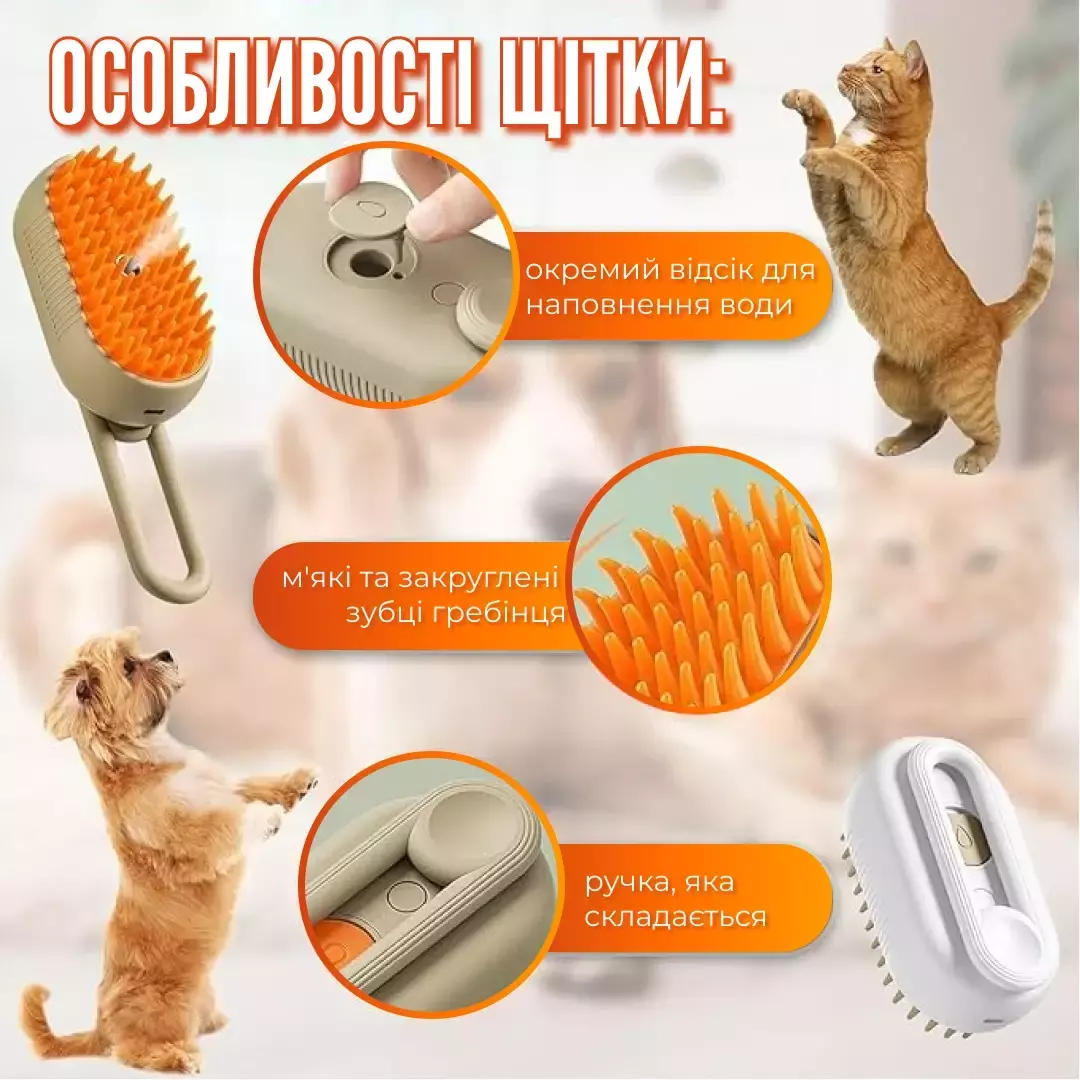 Паровая щетка для груминга обеспечивает гладкость шерсти и не царапает кожу вашего питомца, делая процесс ухода комфортным и безопасным.