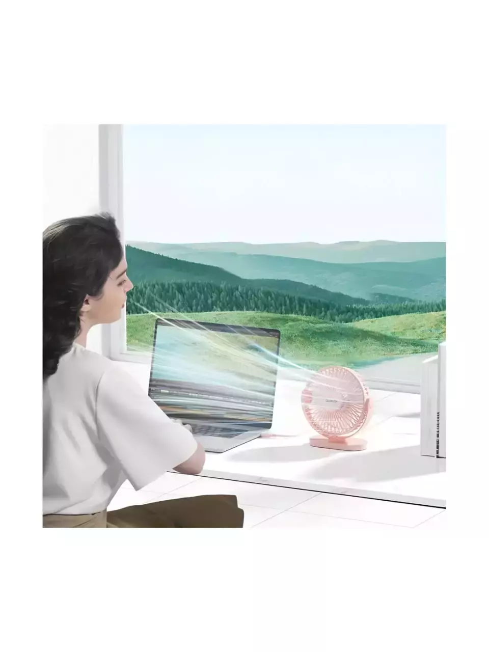 Переносной портативный мини вентилятор MLS6110 на аккумуляторе от usb для кемпинга офиса и дома (Розовый)