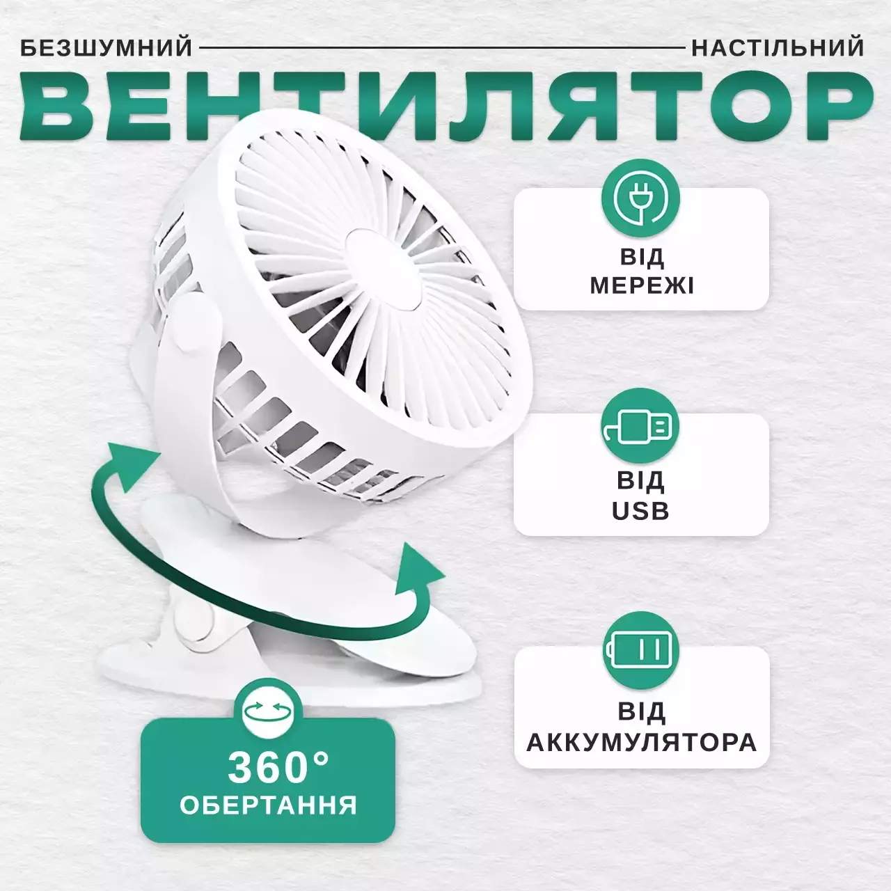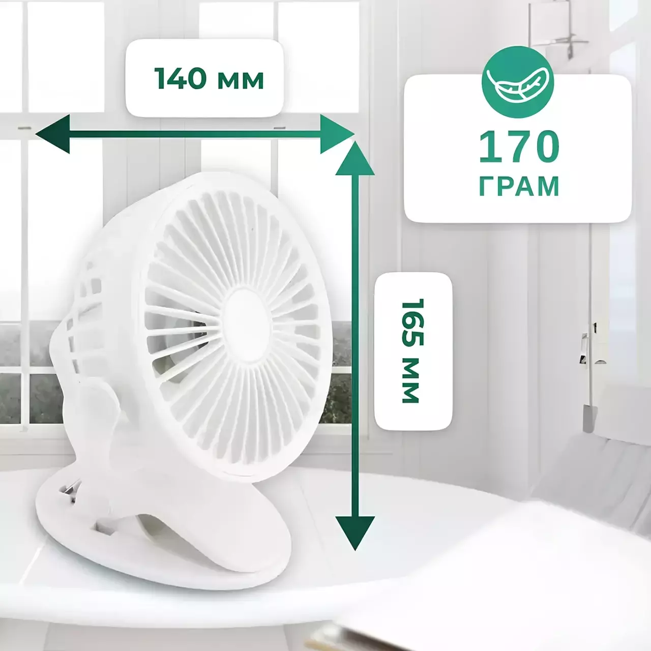 2. Удобное крепление-прищепка: Уникальная конструкция прищепки позволяет крепить вентилятор к любой поверхности — край стола, полки и т.д. Это обеспечивает максимальную гибкость и удобство в использовании.
