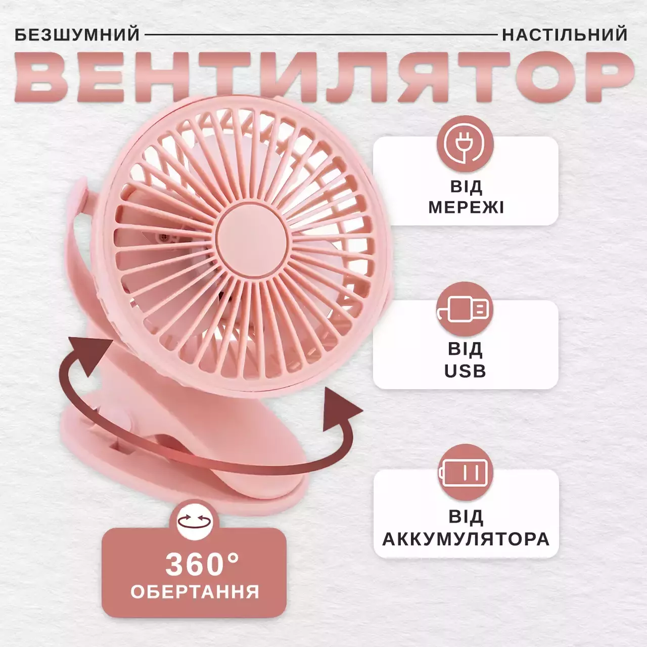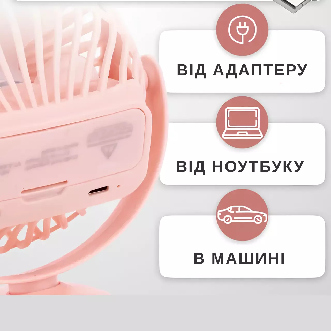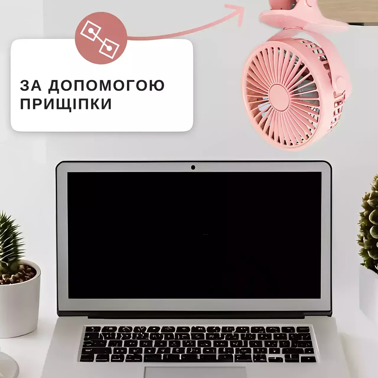 Переносной usb вентилятор Andowl Q-F106 на прищепке и аккумуляторе мини кондиционер с прищепкой розовый