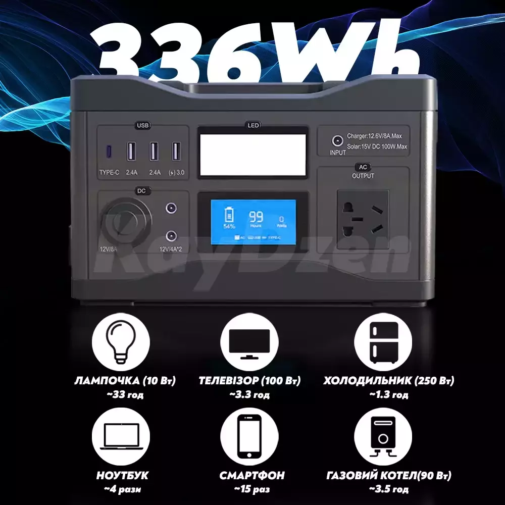 - Емкость зарядной станции, кВт/ч: 0.336 кВт/ч