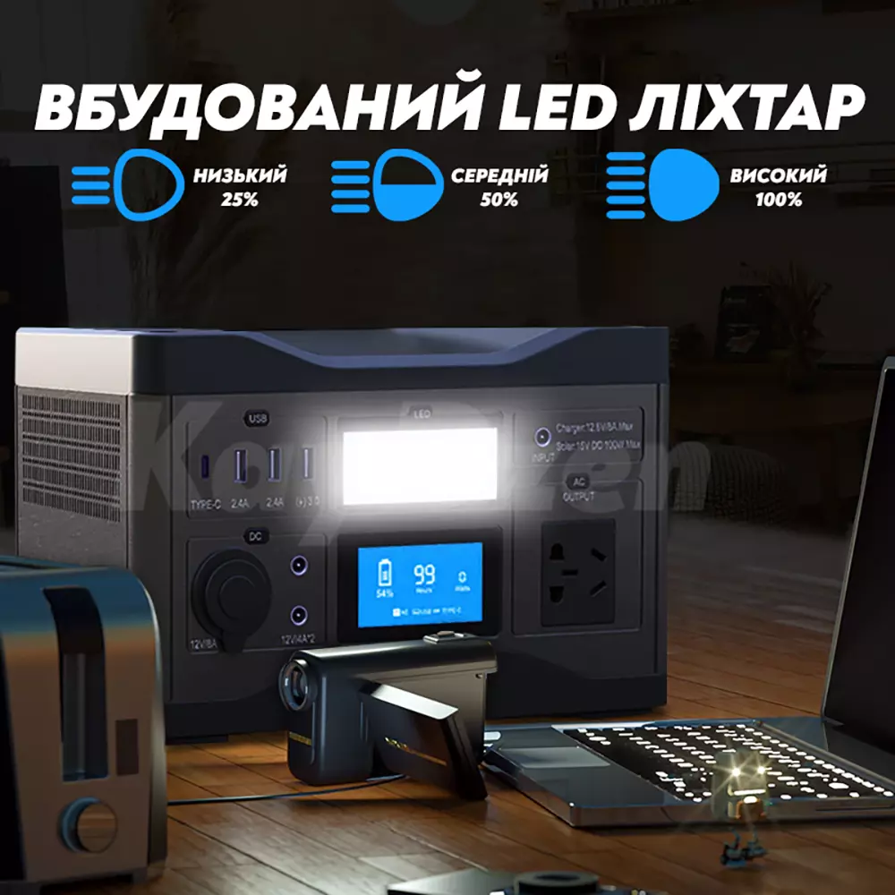 Зарядная станция Andowl Q-CN400 460W оснащен несколькими вариантами выхода, которые могут питать несколько устройств одновременно. Andowl Q-CN400 имеет встроенную светодиодную подсветку с 3 вариантами освещения, 3 выходных порта USB и 1 выходной порт Type-C для зарядки ваших устройств. С выходом переменного тока 220 В вы можете подключать более крупные устройства.