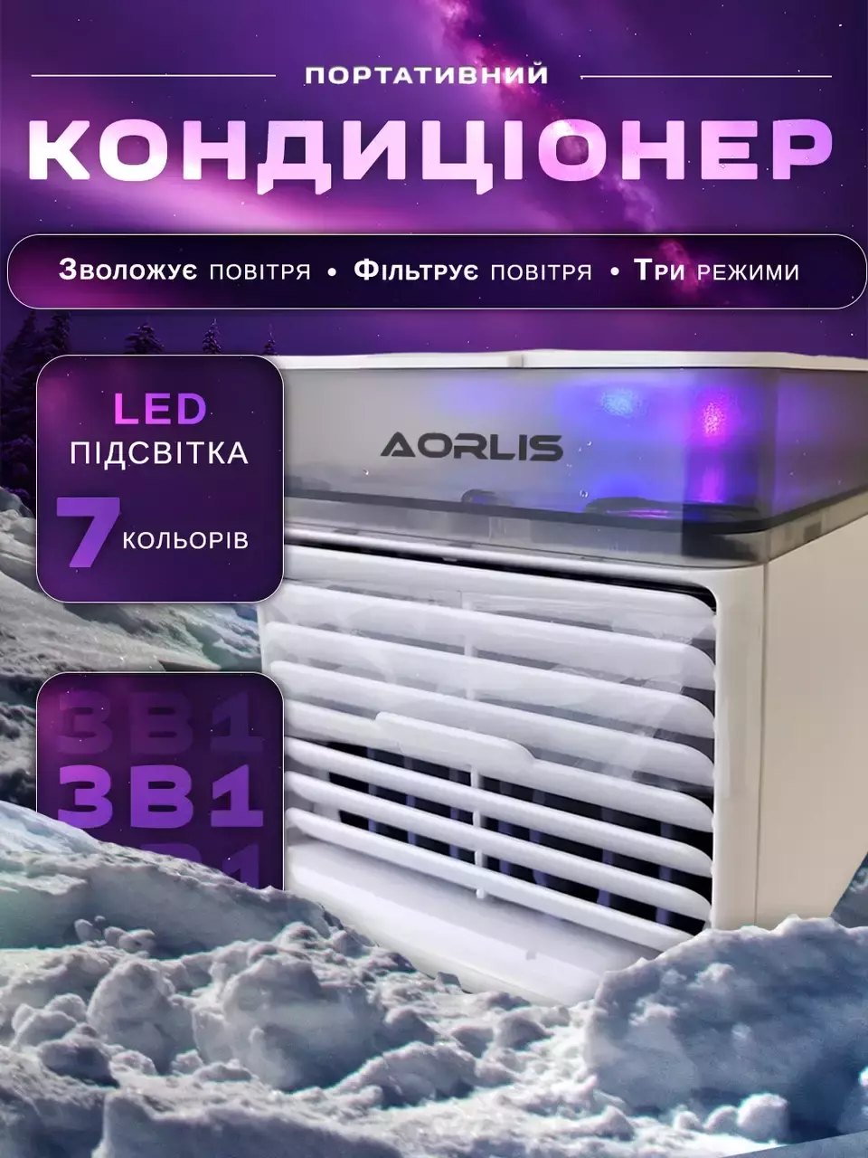 Портативный мини usb кондиционер увлажнитель и светильник 4в1 AORLIS AO-78045 на аккумуляторе
