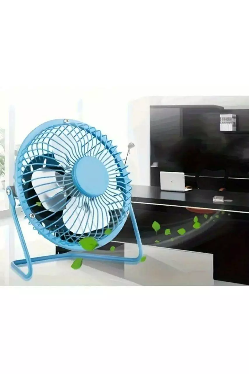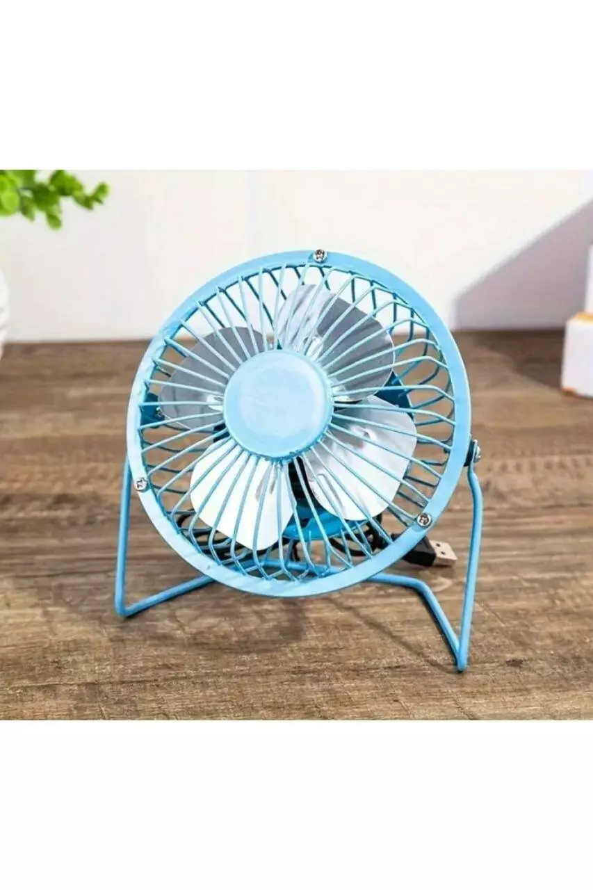 Портативный мини вентилятор usb KMT style железный настольный охладитель воздуха мобильный (Синий)