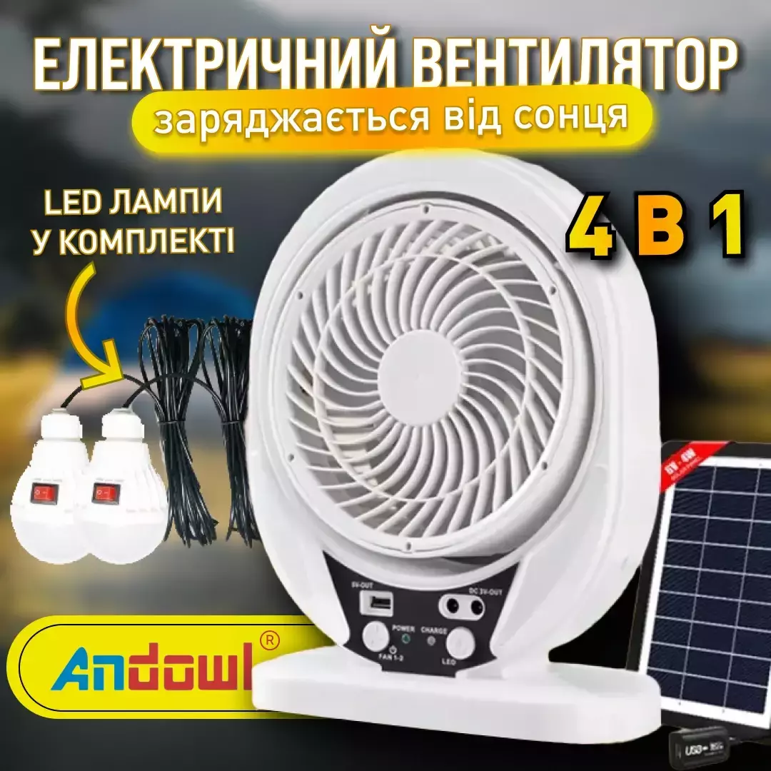 Портативный настольный вентилятор на солнечной батарее Andowl Q-FS930 компактный работа от usb