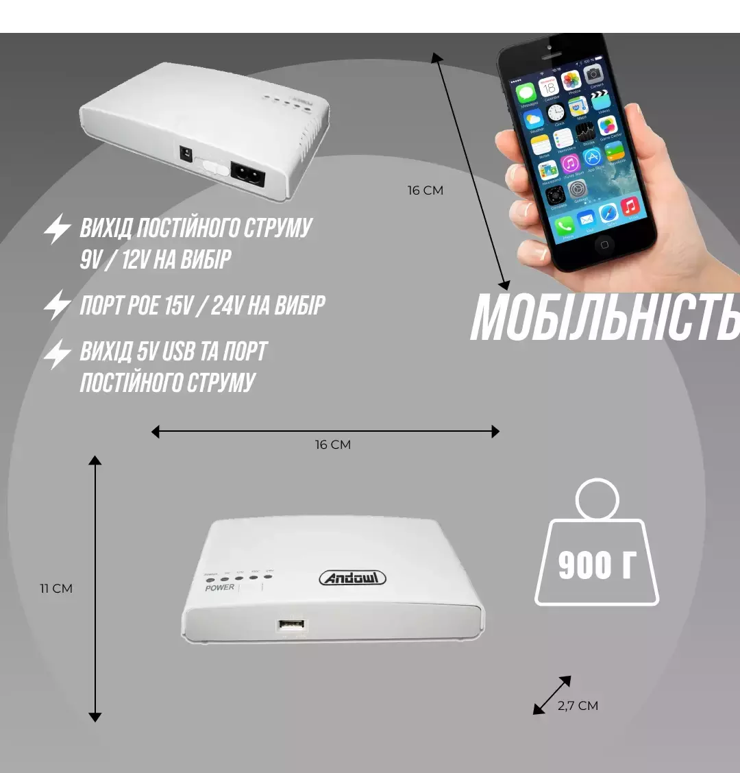 Портативный перезаряжаемый мини-ИБП Andowl Q-A212 мощностью 17 Вт — ваш надежный помощник в любой ситуации. Не позволяйте отключению электроэнергии останавливать вашу работу или отдых!