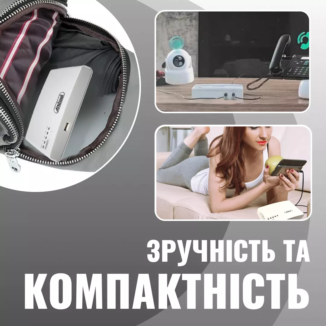 Этот мини-ИБП идеально подходит для активного отдыха, аварийных ситуаций и работы на открытом воздухе. Он обеспечивает бесперебойное питание для ваших устройств даже в самых экстремальных условиях. Компактные размеры и легкий вес делают его удобным для переноски и хранения.